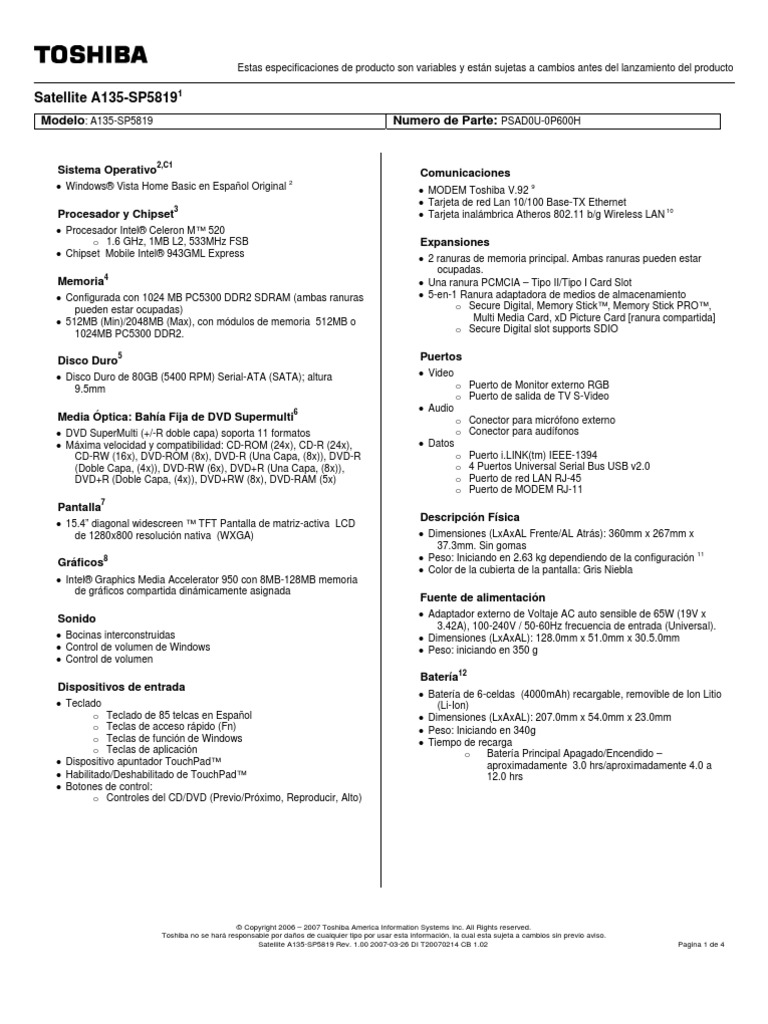 [22+] Toshiba Satellite A135 Manual, Manual De Toshiba Satellite A135-SP58191 Español | Microsoft | Seguro